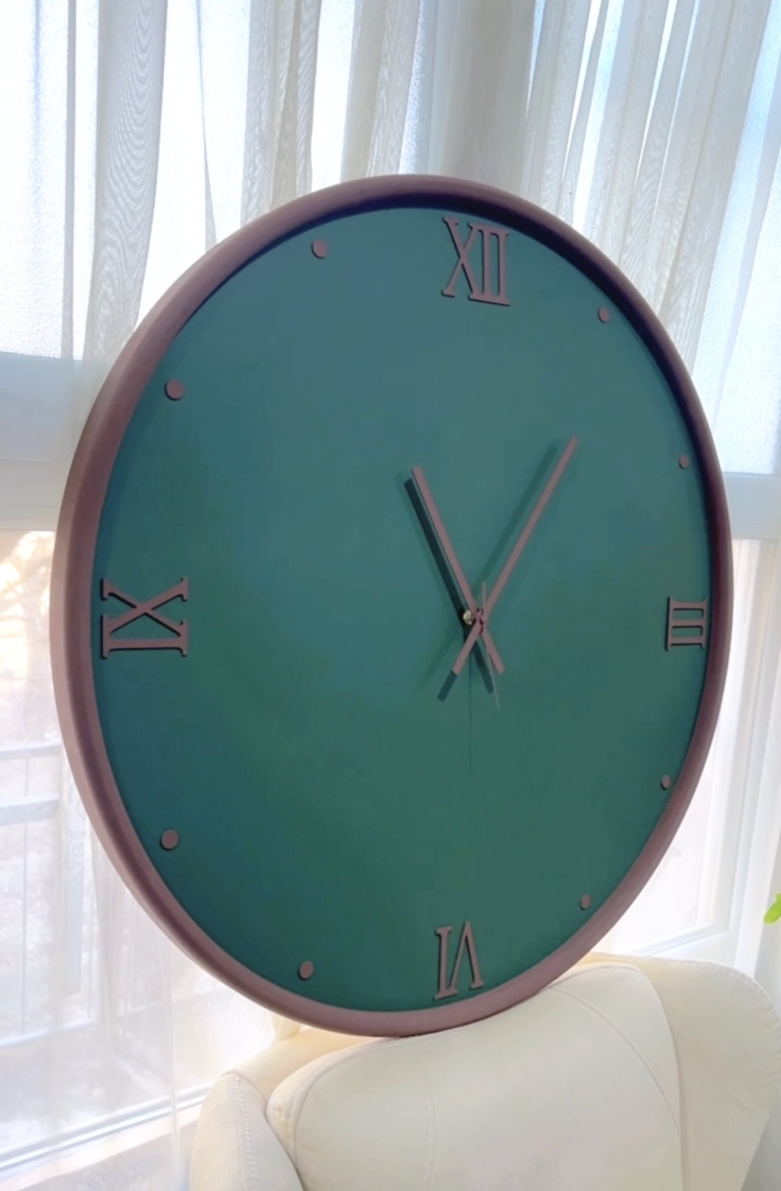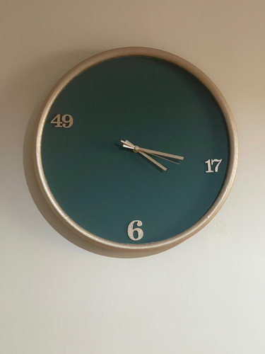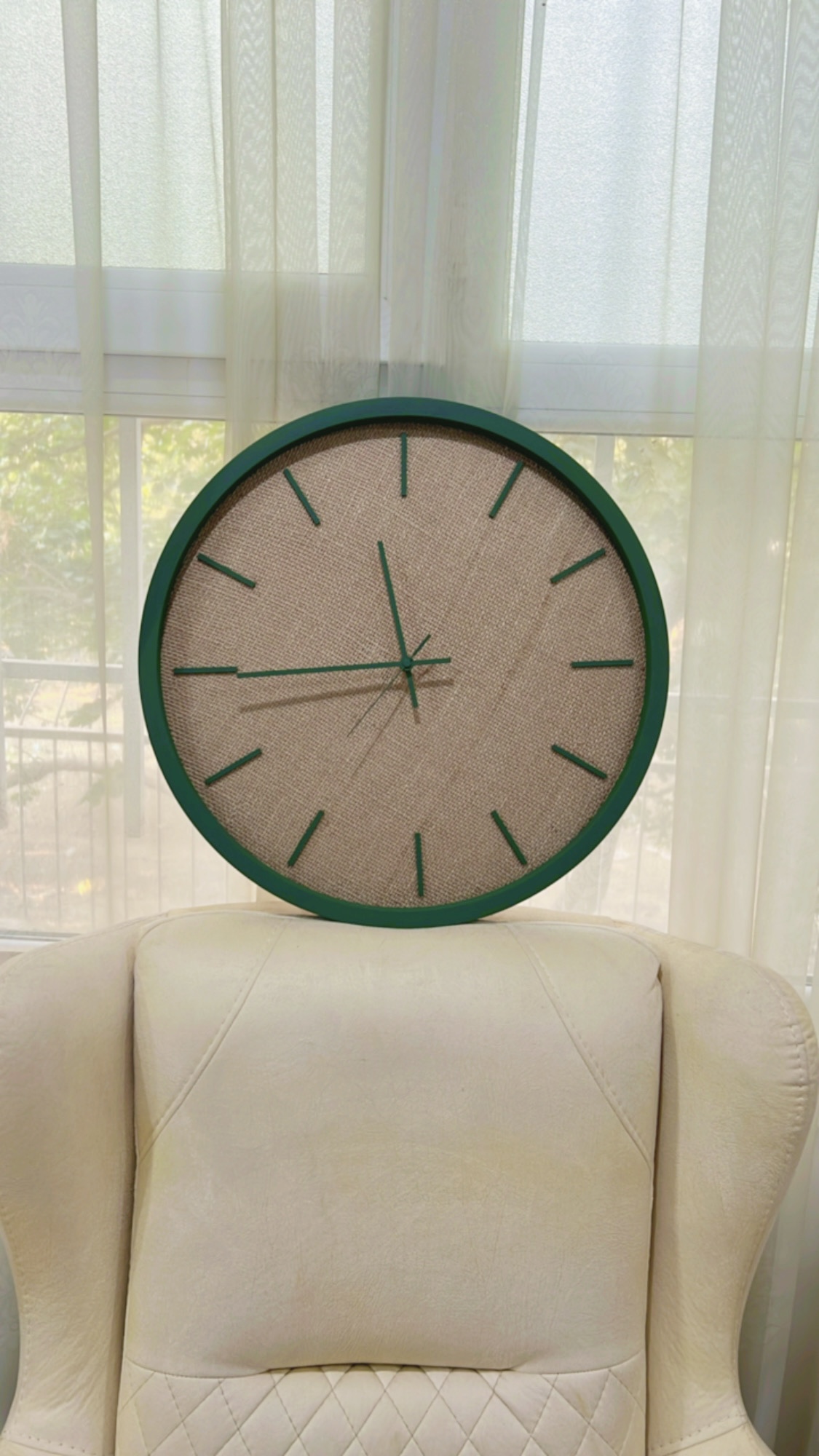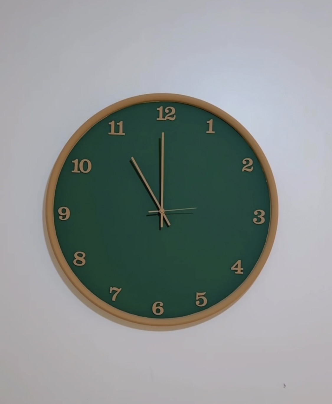 ساعت دیواری دایره لبه گرد زمردی | اعداد خطی ۴ تایی | جنس MDF با موتور آرامگرد تایوانی | ۳۵ سانت