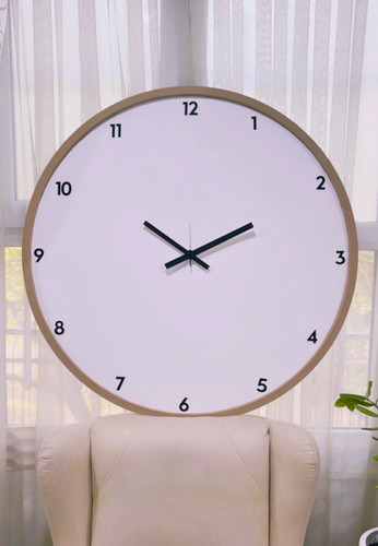 ساعت دیواری مدرن قاب لبه گرد زمینه بژ و قاب چوب| اعداد ظریف خطی | جنس MDF با موتور آرامگرد تایوانی | ۶۵ سانت