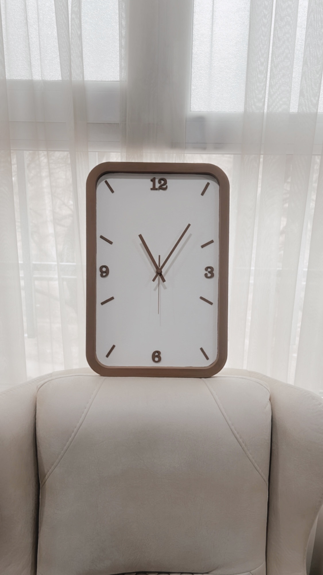 ساعت دیواری مستطیل لبه گرد | اعداد ترکیبی خطی | جنس MDF با موتور آرامگرد تایوانی |