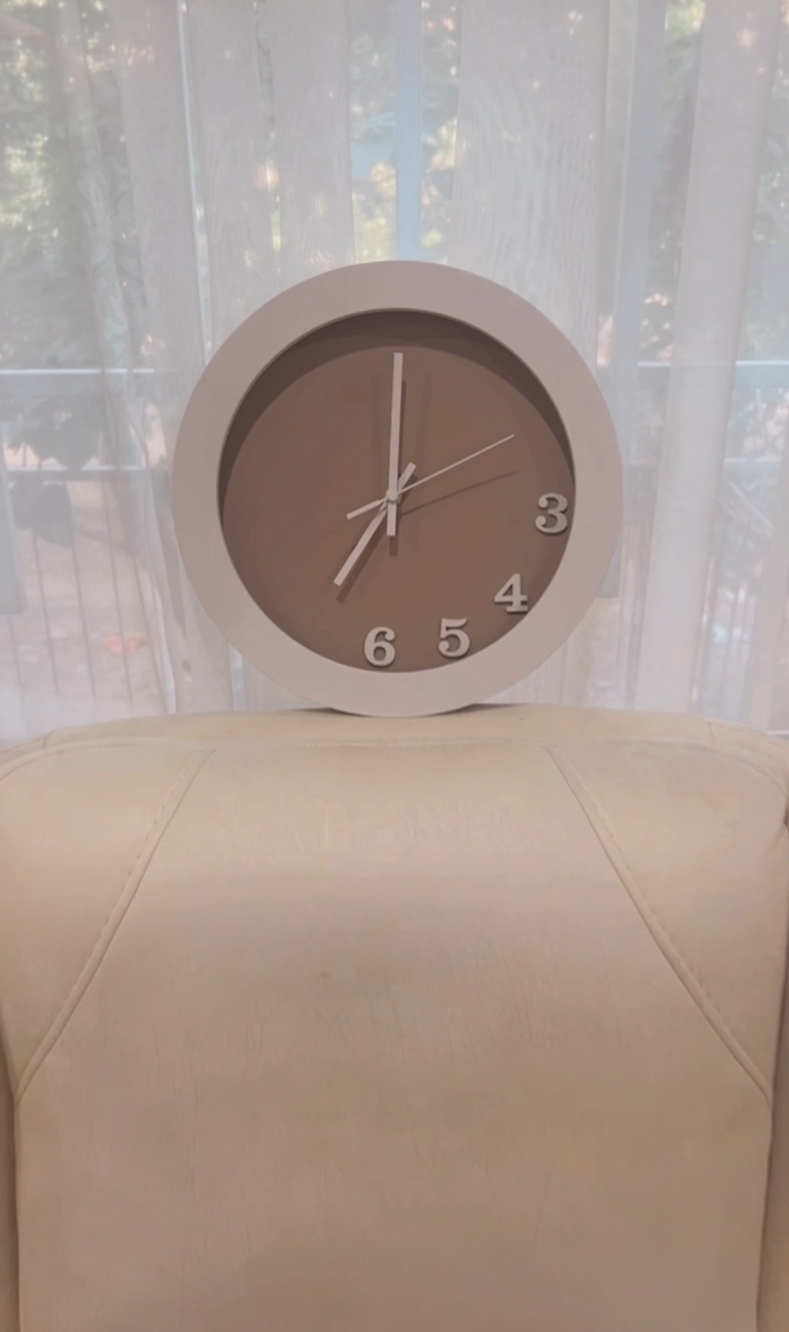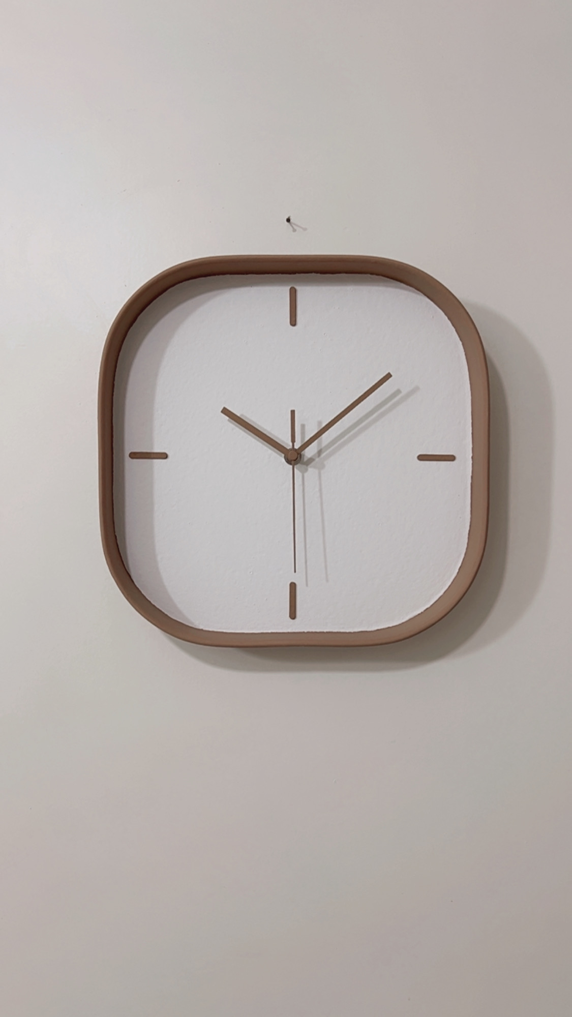 ساعت دیواری مدرن قاب لبه گرد زمینه کرم و قاب قهوه ای روشن| اعداد ظریف خطی | جنس MDF با موتور آرامگرد تایوانی | ۳۰ سانت
