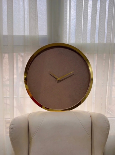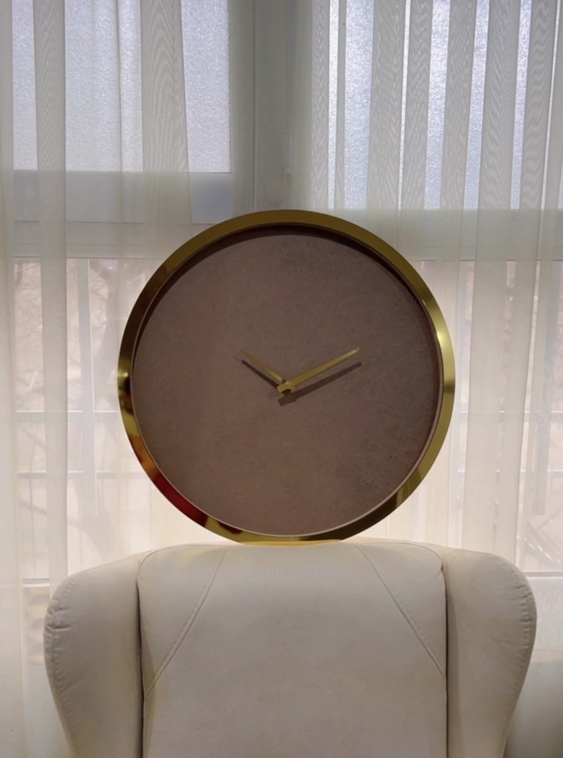 ساعت دیواری مدرن قاب لبه گرد زمینه استخوانی قاب بژ | اعداد ظریف خطی | جنس MDF با موتور آرامگرد تایوانی | ۶۰ سانت