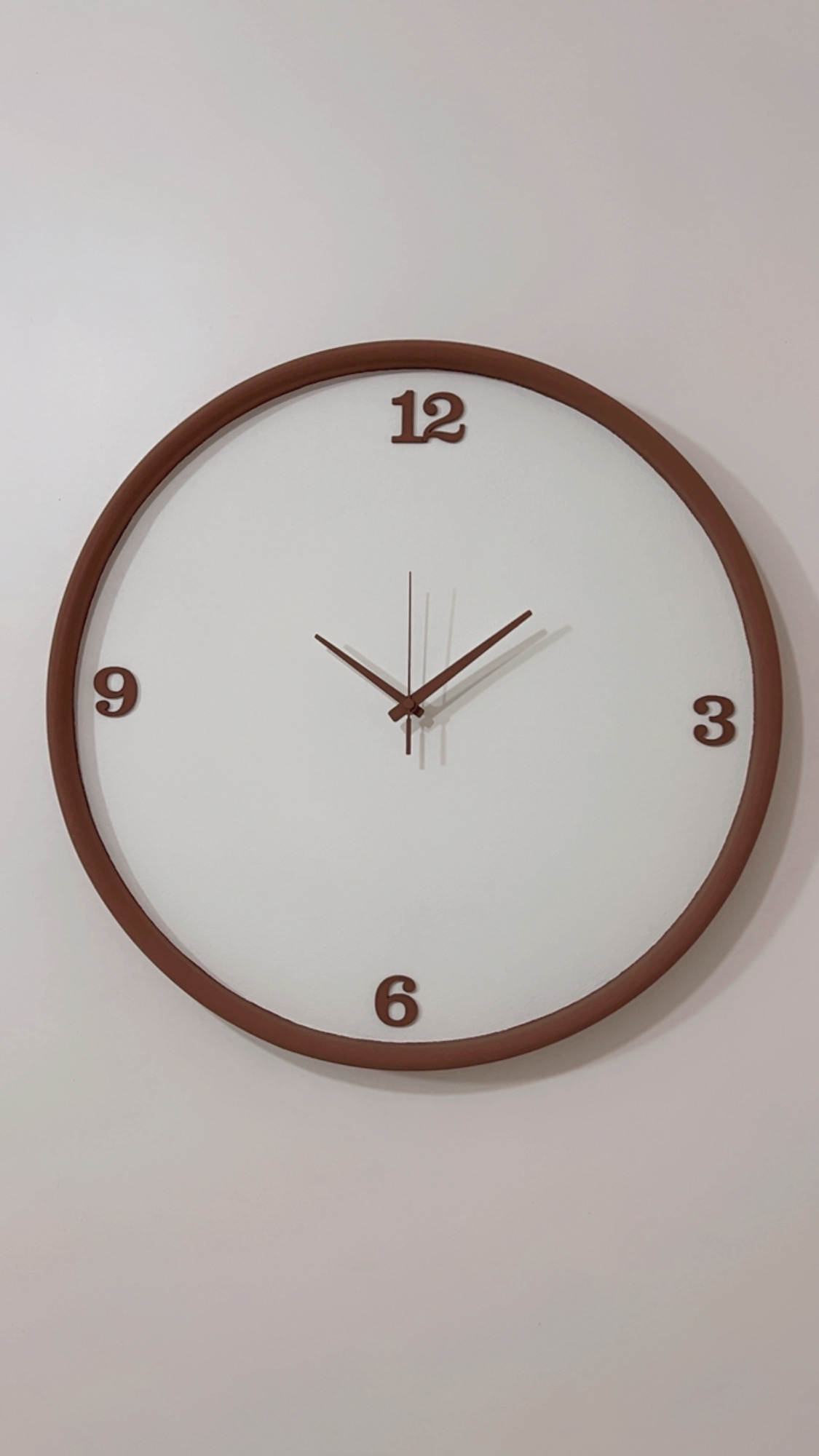 ساعت دیواری مدرن قاب لبه گرد زمینه کرم و قاب قهوه ای روشن| اعداد ظریف خطی | جنس MDF با موتور آرامگرد تایوانی | ۵۵ سانت