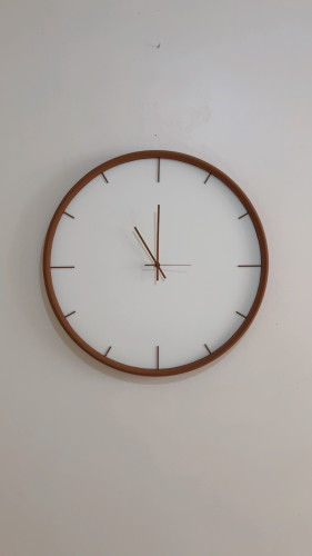 ساعت دیواری دایره لبه تخت | اعداد خطی اصلی بلند بقیه کوتاه | جنس MDF با موتور آرامگرد تایوانی | ۴۰ سانت