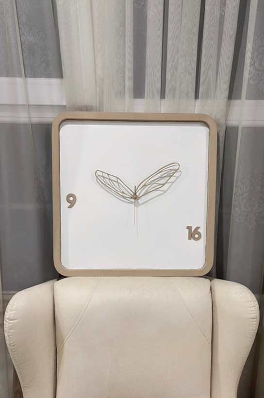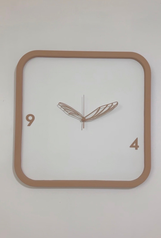 ساعت دیواری مربعی مینیمال | اعداد و عقربه پروانه خاص | جنس MDF با قابلیت انتخاب رنگ | موتور آرامگرد تایوانی