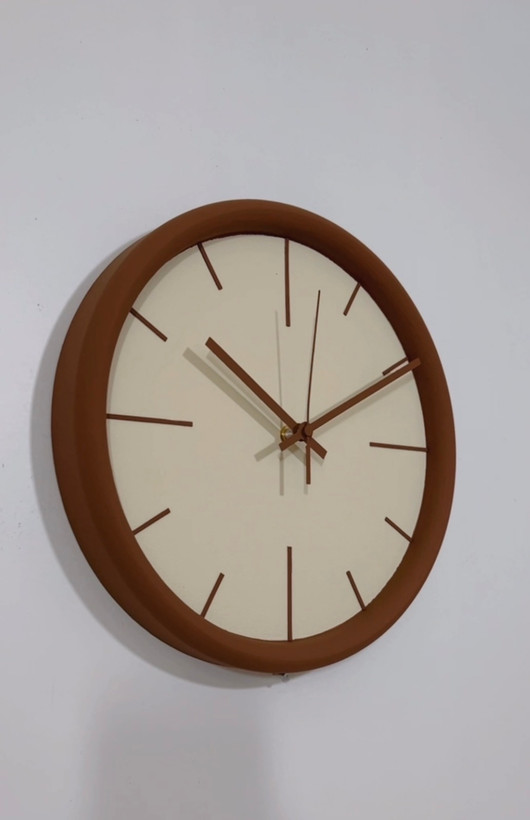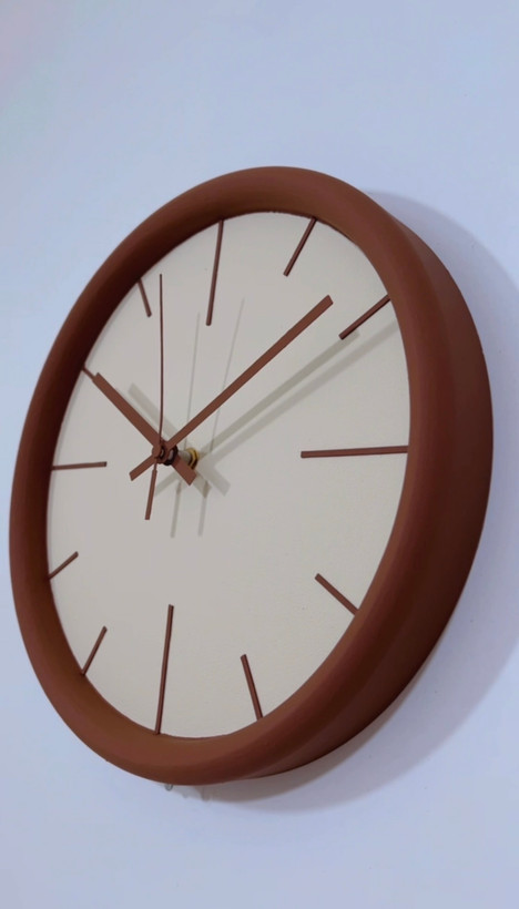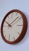 ساعت دیواری مدرن قاب لبه گرد زمینه کرم و قاب قهوه ای روشن| اعداد ظریف خطی | جنس MDF با موتور آرامگرد تایوانی | ۳۰ سانت