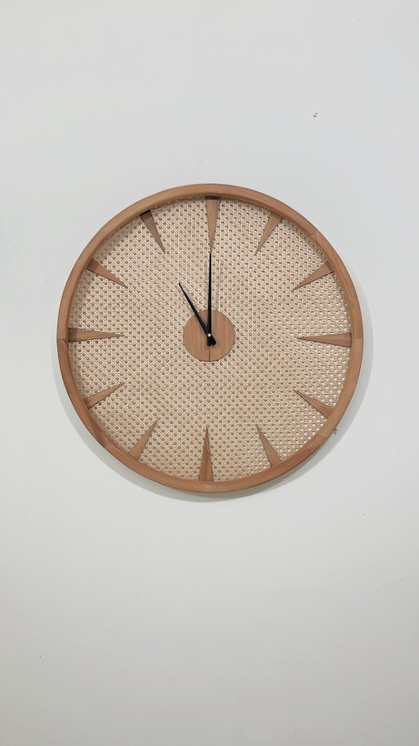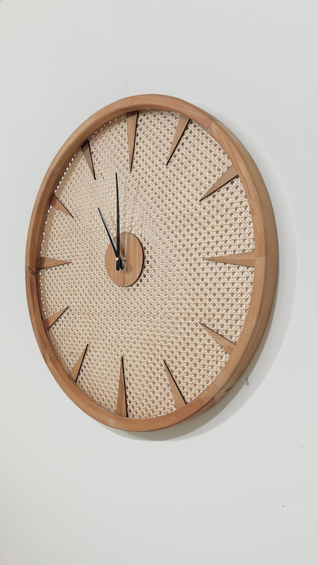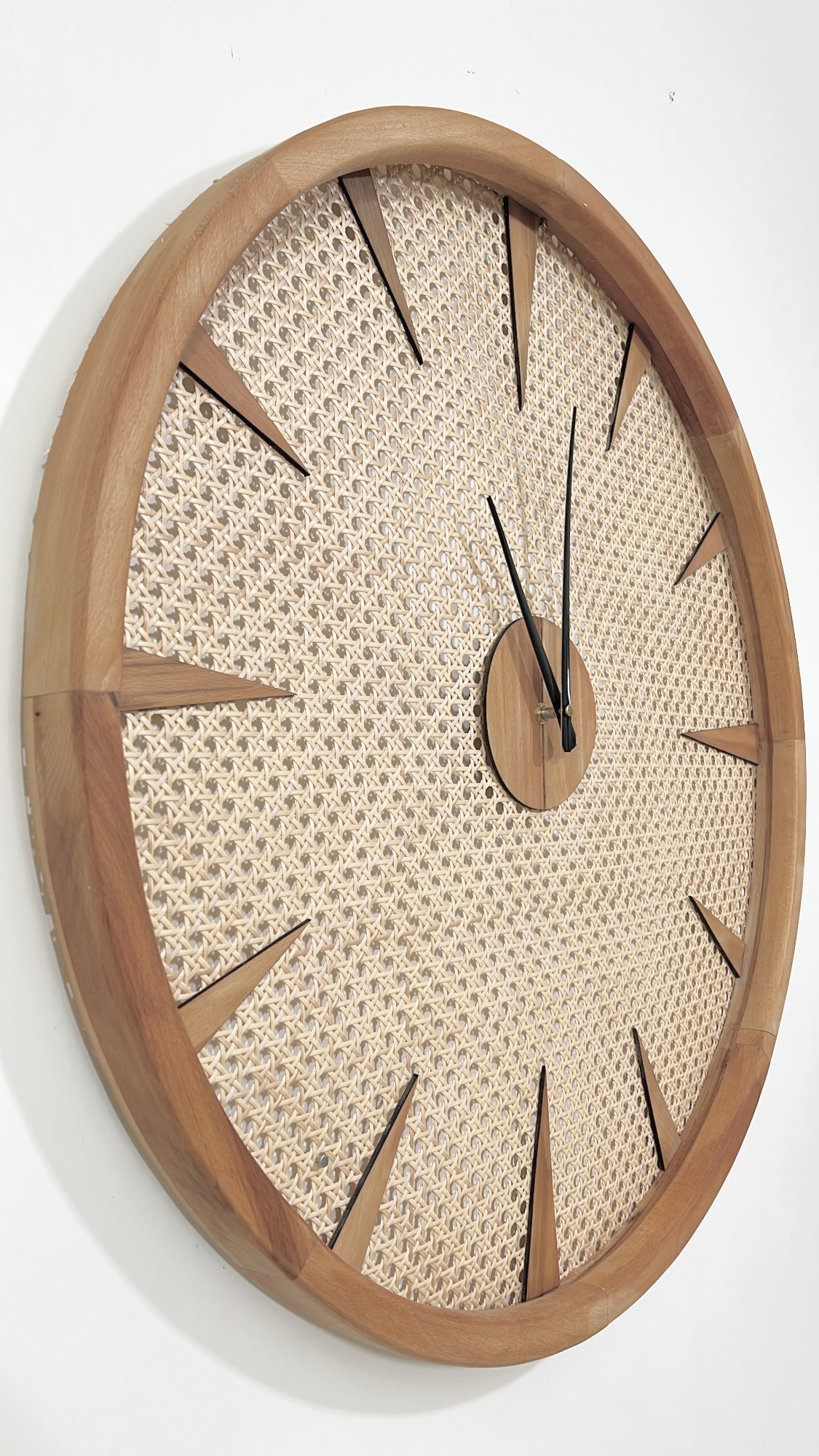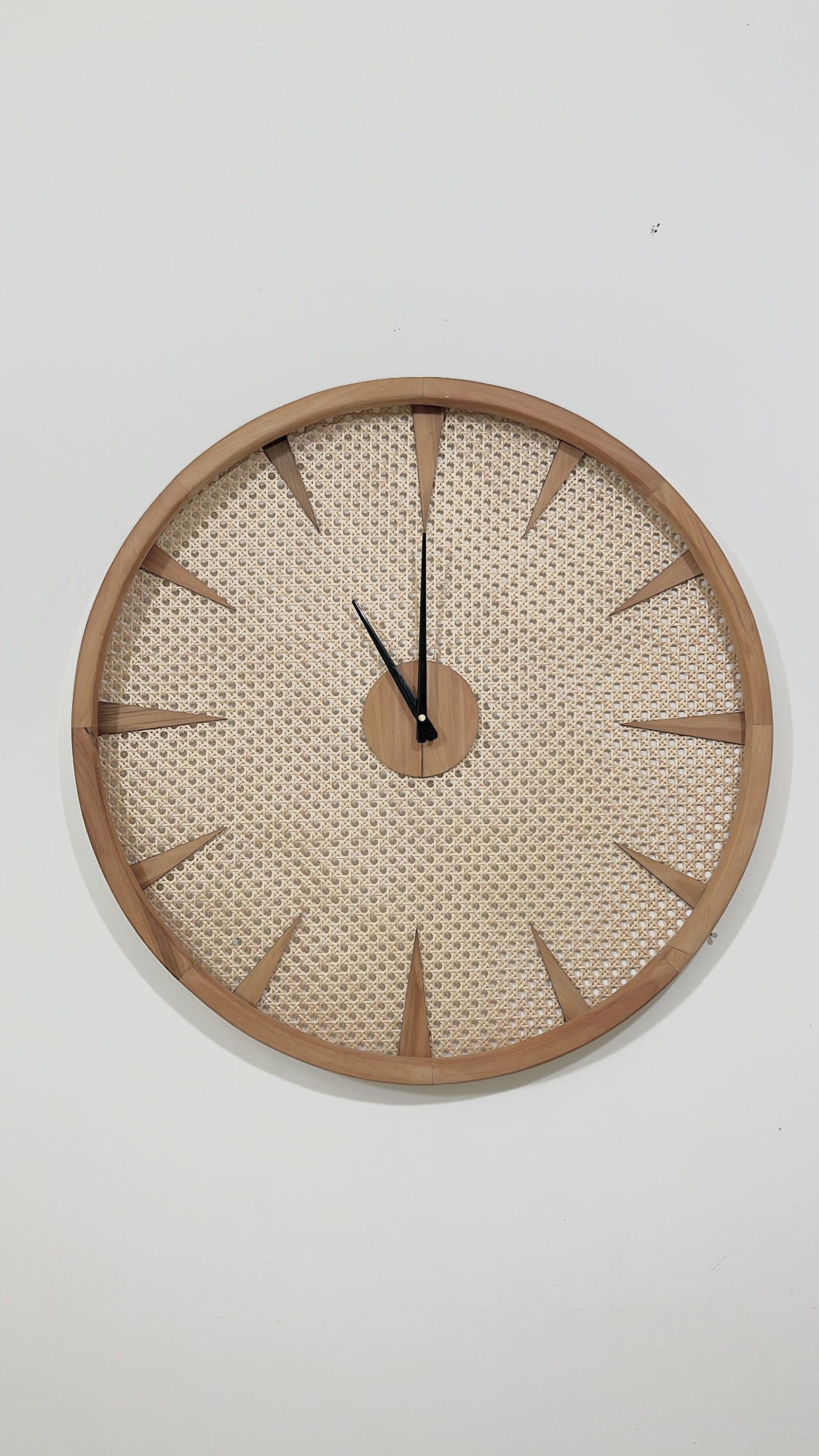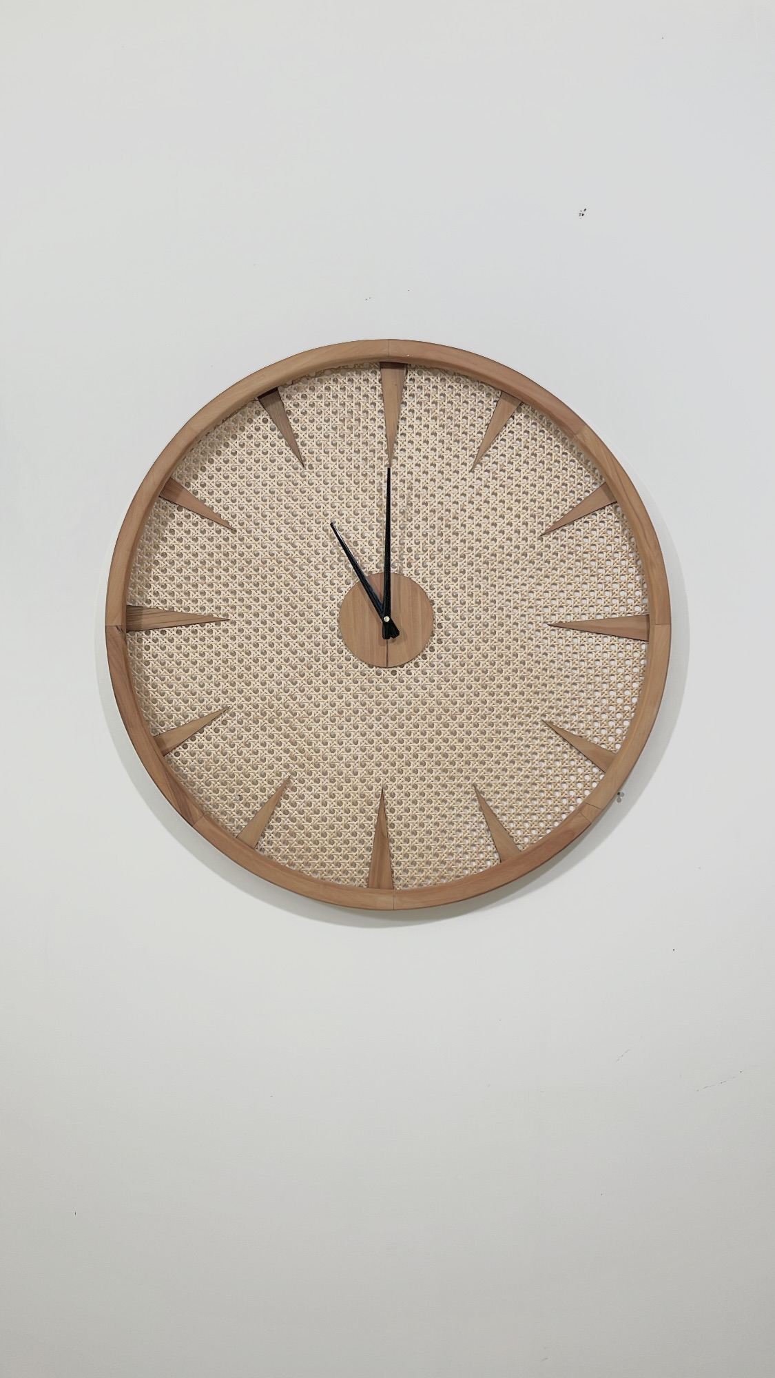 ساعت دیواری گرد تمام چوب طبیعی ترکیب راش و صفحه حصیری بامبو