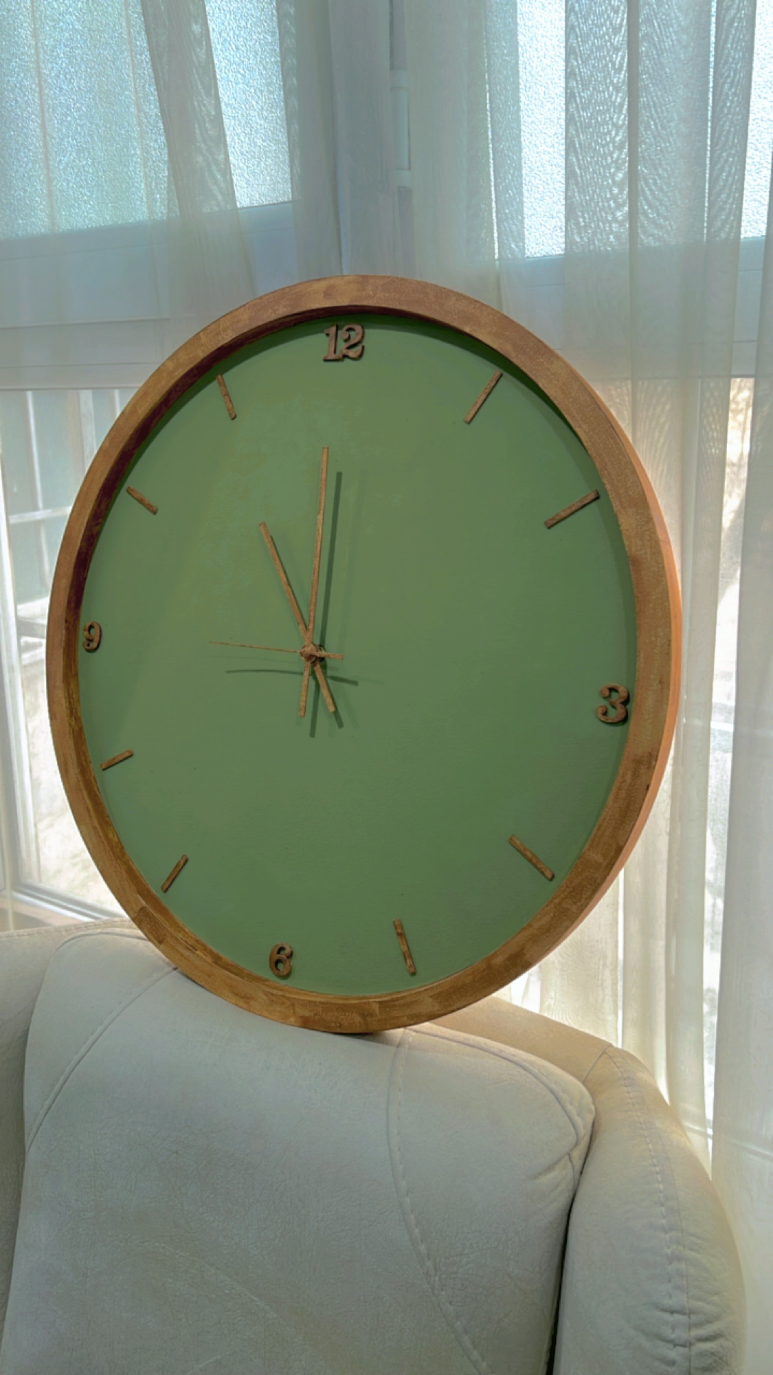 ساعت دیواری گرد طرح چوب عسلی | تمام اعداد ترکیبی خطی | جنس MDF با قابلیت انتخاب رنگ | موتور آرامگرد تایوانی |۶۰ سانت