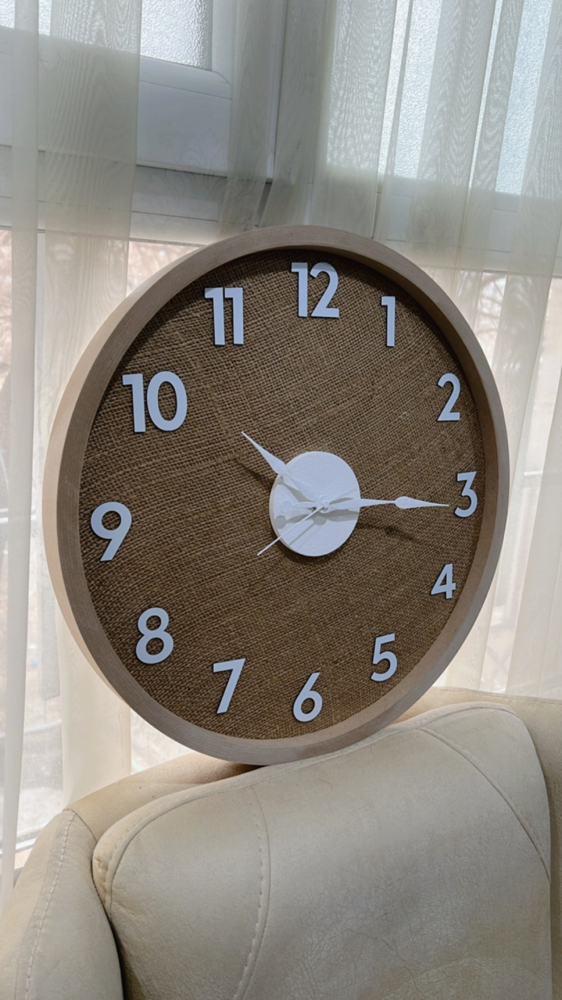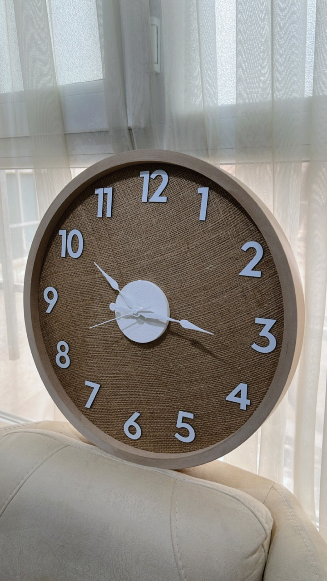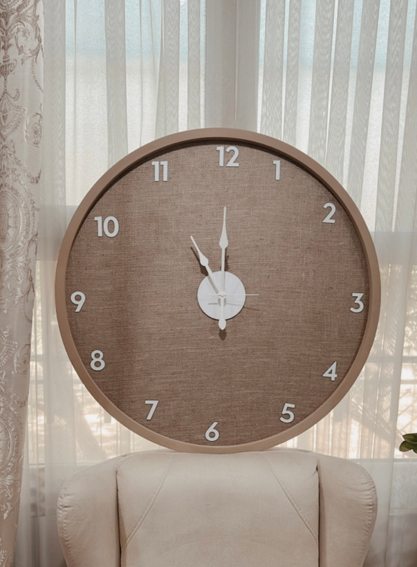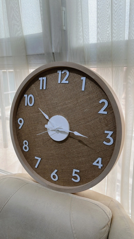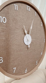 ساعت دیواری مدل کنفی | زمینه پارچه کنفی طبیعی با اعداد برجسته سفید