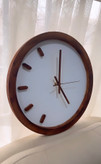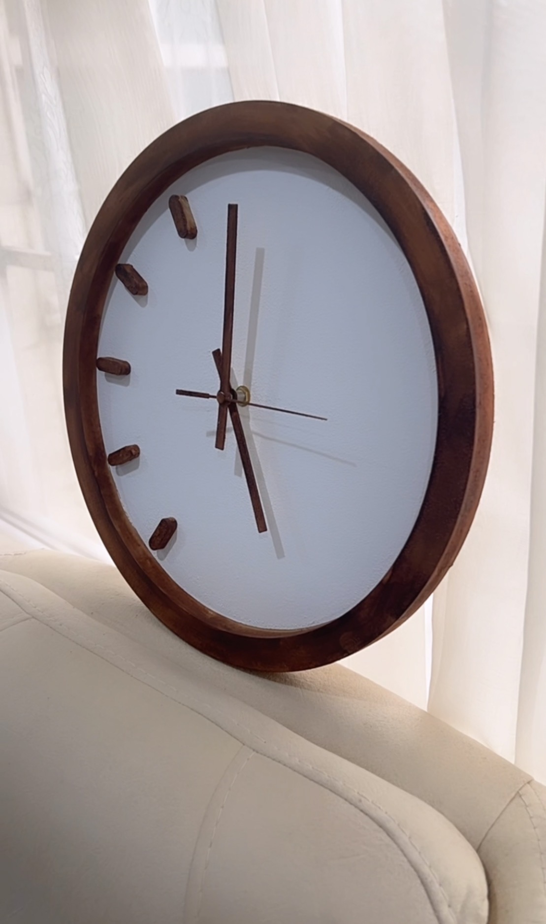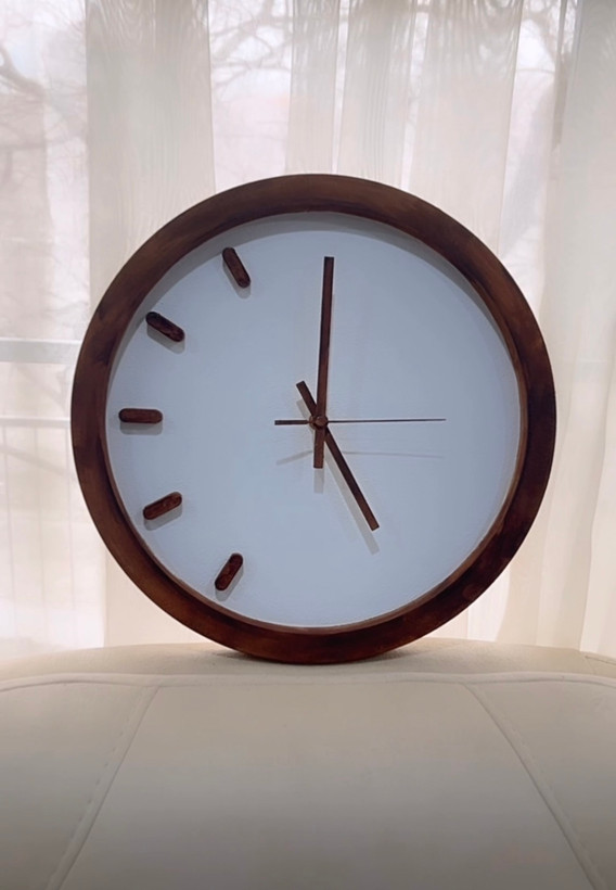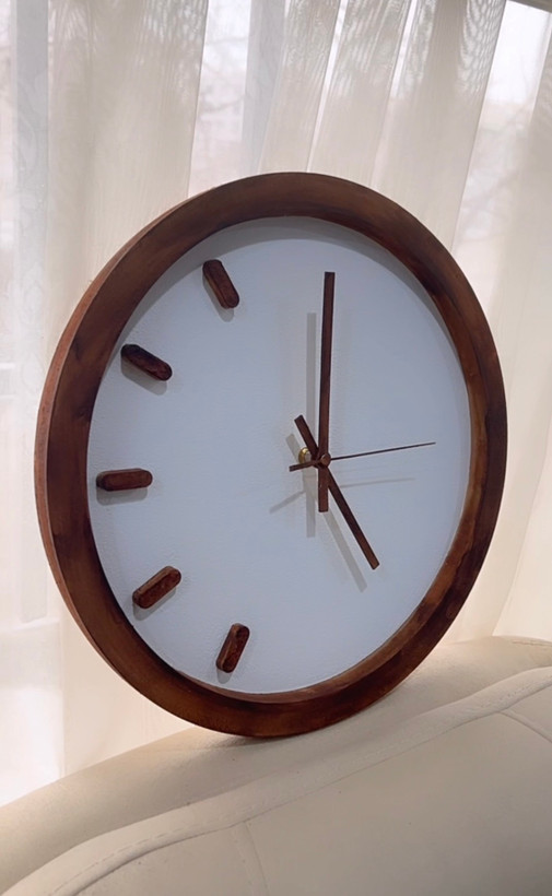 ساعت دیواری دایره طرح چوب فندقی | عدد خطی کپل ۵ تایی چپ | جنس MDF با قابلیت انتخاب رنگ | موتور آرام‌گرد تایوانی | ۴۰ سانت