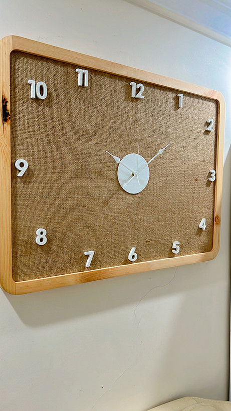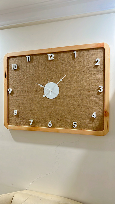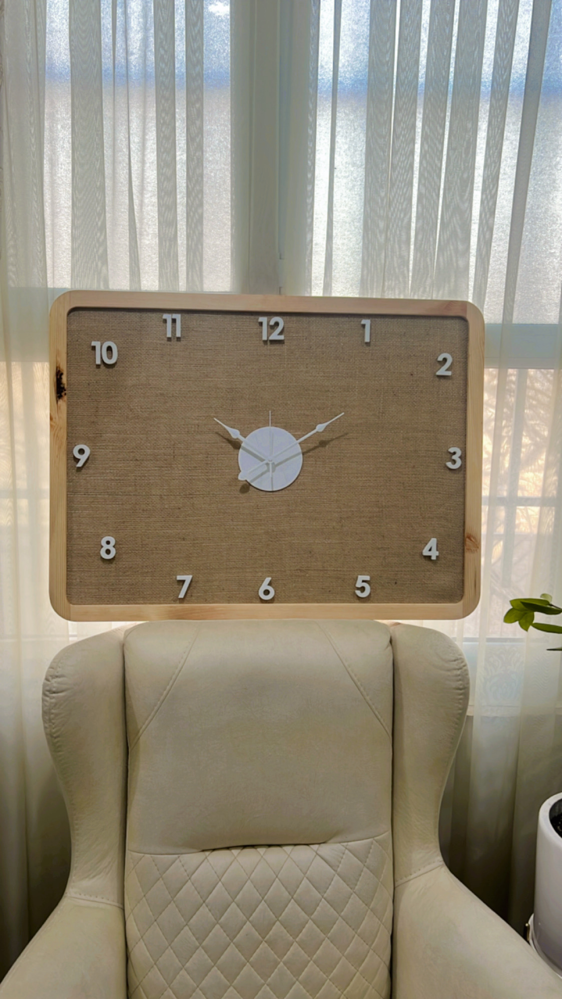 ساعت دیواری مستطیل حلقه چوب طبیعی روس کف کنف | تمام اعداد برجسته| موتور آرامگرد تایوانی |