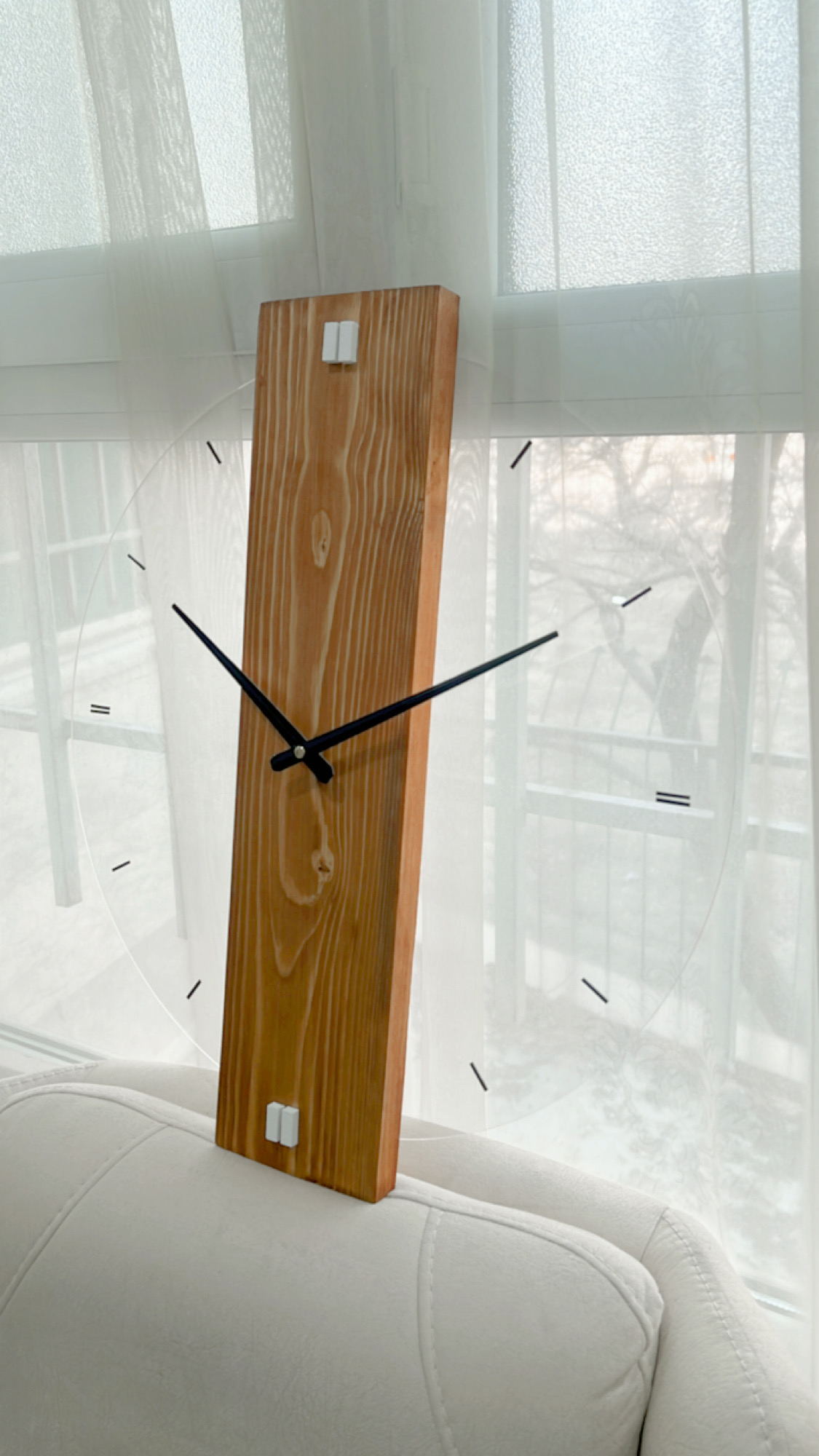 اگر به دنبال اصالت و شکوه طبیعت در منزل خود هستید، این مدل ساعت با بیس چوب طبیعی روس بهترین انتخاب است. برخلاف مدلهای صنعتی، در این ساعت از ورقههای طبیعی چوب روس استفاده شده که هر کدام نقش و نگار خاص خود را دارند؛ به این معنا که ساعتی که به دست شما میرسد، نمونهای کاملاً منحصربهفرد است. ترکیب حلقه و اعداد MDF برجسته روی زمینه چوبی، حسی از سبک روستیک مدرن را به فضای شما میبخشد.
