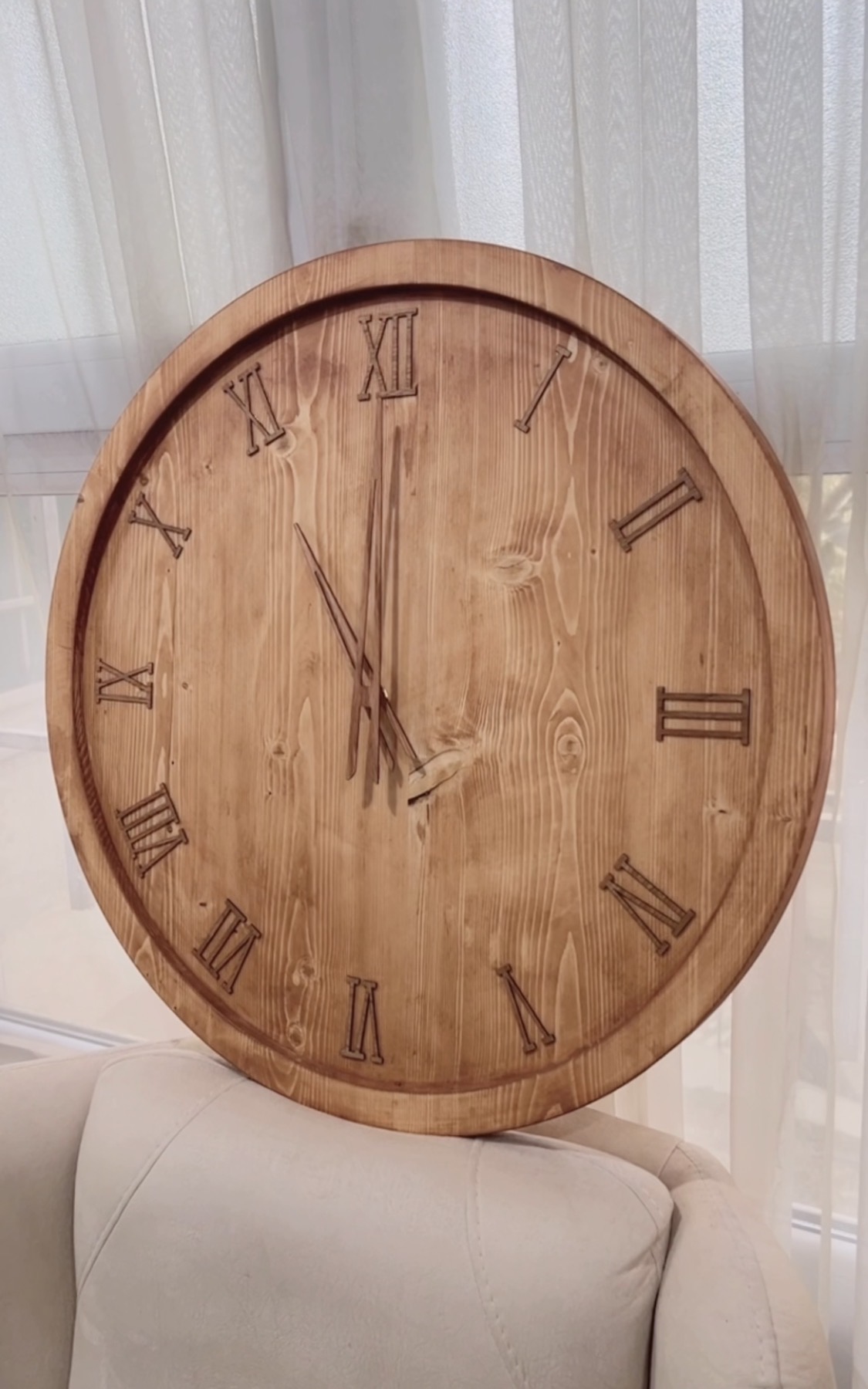 ساعت دیواری با چوب طبیعی روس | تمام اعداد و عقربه چوب طبیعی | موتور آرامگرد تایوانی | ۶۵ سانت