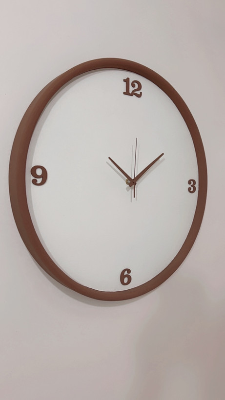 ساعت دیواری دایره لبه گرد | ۴ عدد اصلی | جنس MDF با موتور آرامگرد تایوانی | ۵۰ سانت قهوه ای روشن
