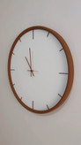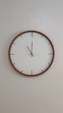 ساعت دیواری مدرن قاب لبه گرد زمینه کرم و قاب قهوه ای روشن| اعداد ظریف خطی | جنس MDF با موتور آرامگرد تایوانی | ۵۵ سانت