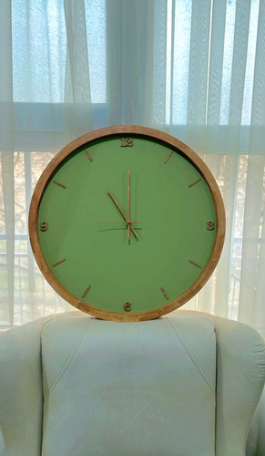 ساعت دیواری دایره لبه گرد زمردی | اعداد خطی ۴ تایی | جنس MDF با موتور آرامگرد تایوانی | ۳۵ سانت