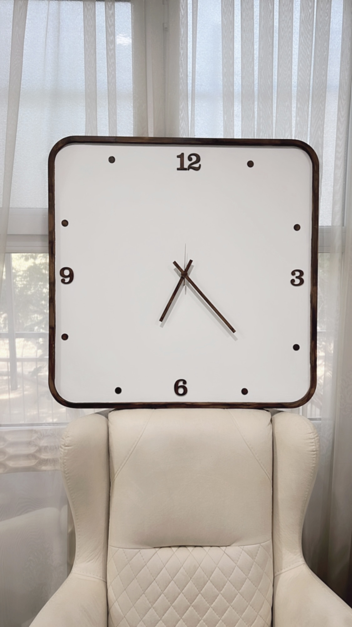 ساعت دیواری مربعی مینیمال | اعداد خاص ایستاده | جنس MDF با قابلیت انتخاب رنگ | موتور آرامگرد تایوانی|۸۰ سانت