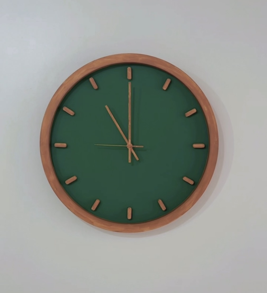 ساعت دیواری دایره لبه گرد زمردی | اعداد خطی ۴ تایی | جنس MDF با موتور آرامگرد تایوانی | ۳۵ سانت